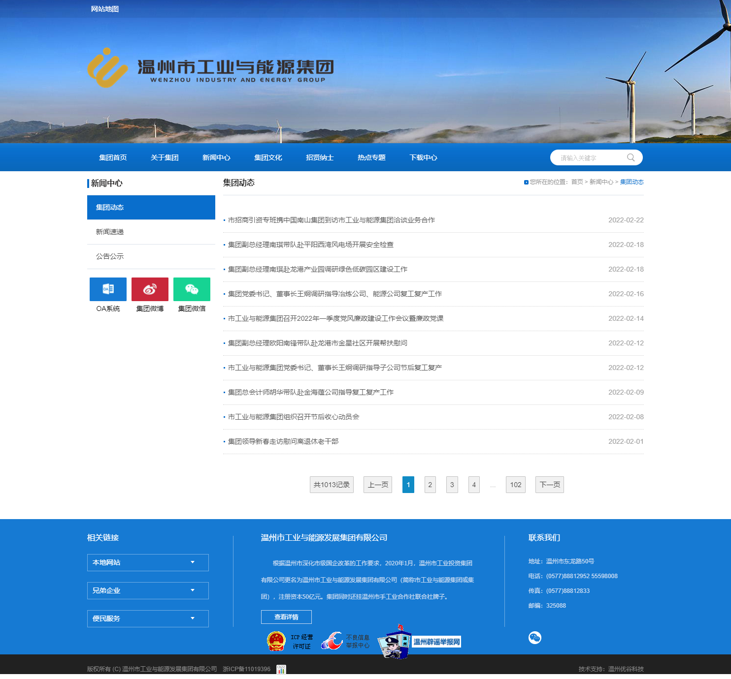 2020年1月,溫州市啟動(dòng)國有企業(yè)深化改革,原溫州市工業(yè)投資集團(tuán)優(yōu)化組建為現(xiàn)在的溫州市工業(yè)與能源集團(tuán),為溫州市十大國有集團(tuán)之一,注冊資本50億元。集團(tuán)同時(shí)還掛溫州市手工業(yè)合作社聯(lián)合社牌子。