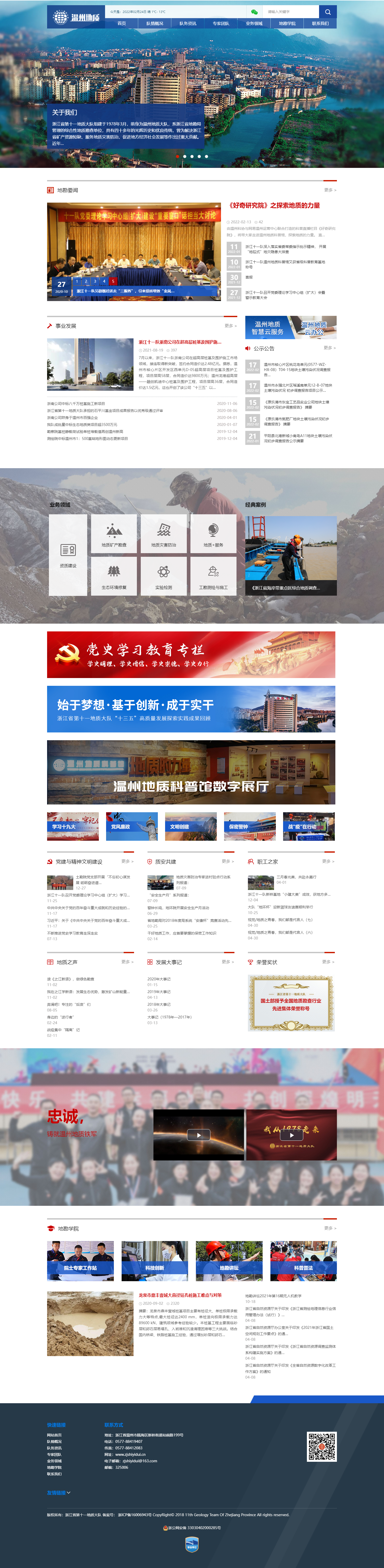 浙江省第十一地質(zhì)大隊(duì)組建于1978年3月,前身為溫州地質(zhì)大隊(duì),系浙江省地勘局管理的綜合性地質(zhì)勘查單位,具有四十多年的光輝歷史和優(yōu)良傳統(tǒng),曾為解決浙江省礦產(chǎn)資源短缺、服務(wù)地質(zhì)災(zāi)害防治、促進(jìn)地方經(jīng)濟(jì)社會(huì)發(fā)展等作出過重大貢獻(xiàn)。近年來,主要為地方提供資源勘查、地質(zhì)災(zāi)害防治及地質(zhì)+等地質(zhì)科技特色支撐服務(wù)。先后榮獲全國國土資源系統(tǒng)先進(jìn)集體、全國國土資源系統(tǒng)功勛集體、全國地質(zhì)勘查行業(yè)先進(jìn)集體、浙江省文明單位、浙江省五一勞動(dòng)獎(jiǎng)狀、浙江省地質(zhì)災(zāi)害防治先進(jìn)集體等榮譽(yù)稱號(hào)。